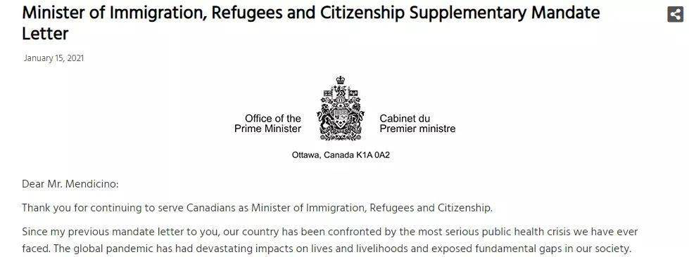 加拿大总理特鲁多近日向移民部长门迪奇诺(Marco Mendicino)签发了新补充的移民任务授权书(New Supplementary Mandate Letter),授权书强调,移民仍将是加国经济和社会发展的中心任务。