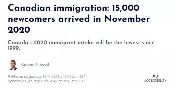 一般情况下,加拿大每月通常会迎接大约2.5万到3.5万名新移民。但是自从去年3月开始实施旅行限制以来,这一数字大幅下降。2020年前11个月,加拿大总计迎来了17.4万名移民。根据联邦移民部的显示数字,2020年全年的新移民人数预计不足20万,创了22年以来的新低纪录。相比之下,2019年的新移民数量却为34.1万。