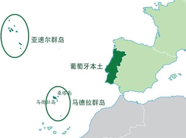 下面这张是马德拉群岛和亚速尔群岛地理位置示意图:
