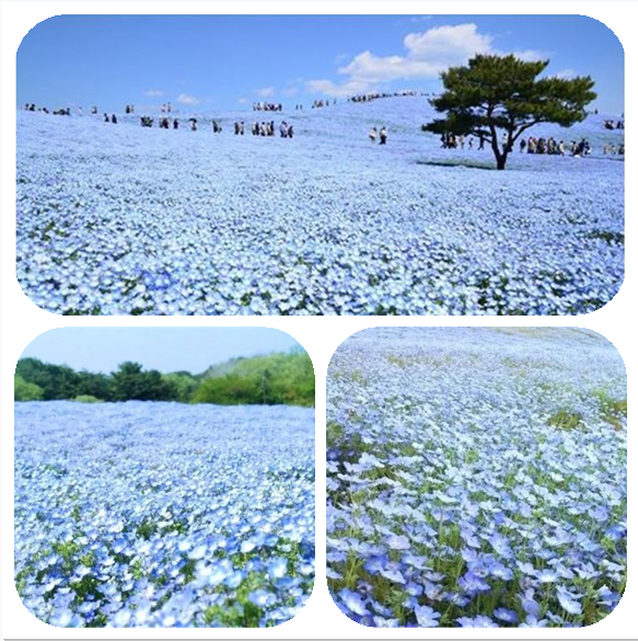 比如喜林草(又名粉蝶花)花海,蓝色与蓝泽,在蓝天的映衬下,在海岸边的海浪对比中,整个世界成了蔚蓝与浅蓝相牵的场景。见过美景如斯,才知道蓝色止于礼,这是一种不夸张的美,带着治愈人心的纯净。