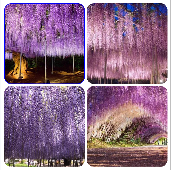 还有紫藤花花海,这里估计是最让人感觉到梦幻的地方,是带着日式精致的景色。一片紫色,流泻而下。这样的美,非语言能够比拟,震撼人心,也让人流连忘返。