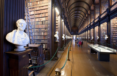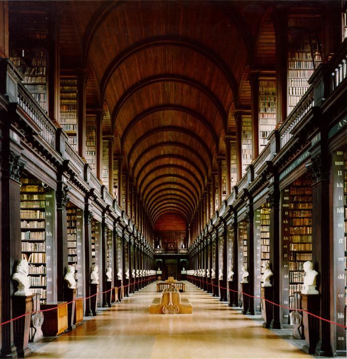 爱尔兰都柏林圣三一大学的图书馆是欧洲最大的图书馆之一,建立于16世纪末期,藏书超过四百二十五万卷,并广泛收藏手稿、地图和音乐。自从1801年以来,该图书馆开始享有接收所有爱尔兰和英国出版物的特权。该馆不但藏有众多的手稿和印刷本,也有丰富的电子信息资源。