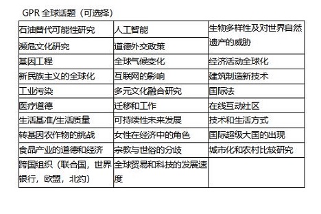 所选课程中的“剑桥全球视野课程“和 “独立研究报告”两项,简称 GPR课程。如果想获得剑桥Pre-U文凭证书,这两门是必须要完成学习和考试的。