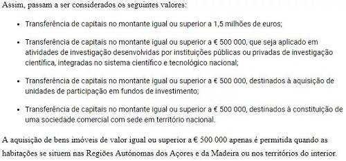 5. 50万欧以上住宅类房产或35万欧以上翻新住宅类房产,只能在内陆地区、马德拉群岛和亚速尔群岛购买。