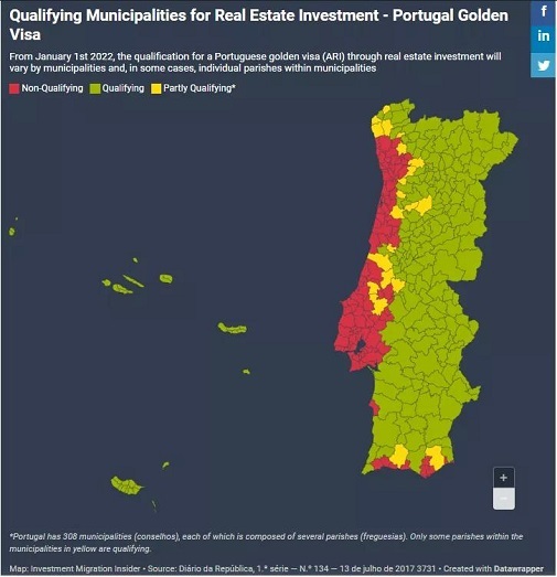 葡萄牙黄金居留新政中,对中国投资人而言,影响较大的是房地产投资范围的缩减,50万欧以上住宅类房产或35万欧以上翻新住宅类房产,只能在内陆地区、马德拉群岛和亚速尔群岛购买。