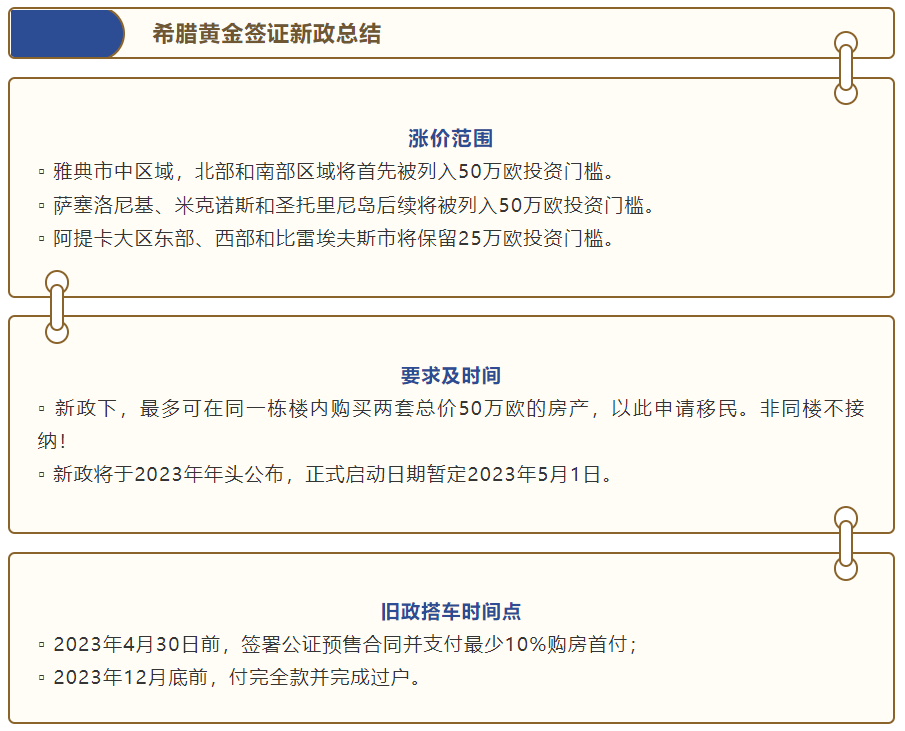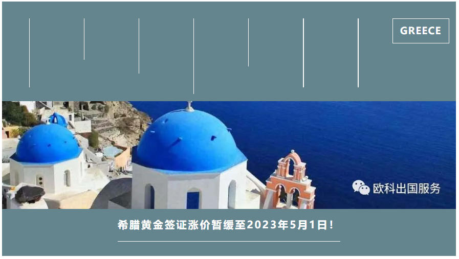 希腊黄金签证涨价暂缓至2023年5月1日!