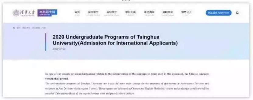 《2020年清华大学国际学生(本科)录取要求》官方出炉,仍然是免笔试!