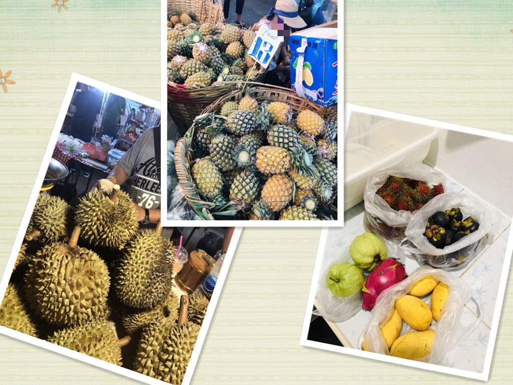 其他水果的价格也是分外美丽:泰国本土的小榴莲,个头不大,圆圆的,大概12元人民币一斤,很便宜,但是好吃不输金枕头!泰国的菠萝真的超级甜!Ms S以前甚至以为是不是都经过糖水泡过,后来才知道,就是那么甜……而人民币1.2元一斤,你说感不感动?!Ms S日常购买的水果,图片里的这一堆大概人民币35块左右。