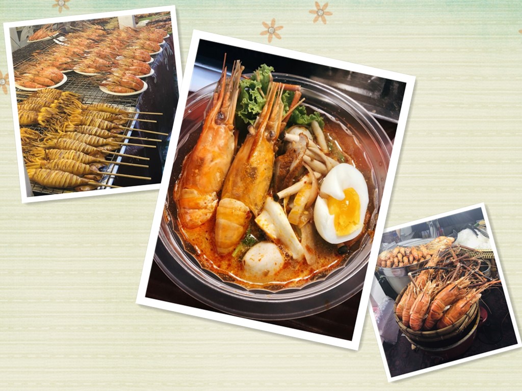 还有泰国最最最常见的烤虾,一开始会觉得海鲜不香辣爆炒真是浪费。但是泰式烤虾,吃的就是原味,鲜嫩的虾尾沾上绿色的泰国海鲜汁,别有一番滋味,Ms S说她第一次在清迈吃的时候,一个人吃了两份,一共16只大虾……