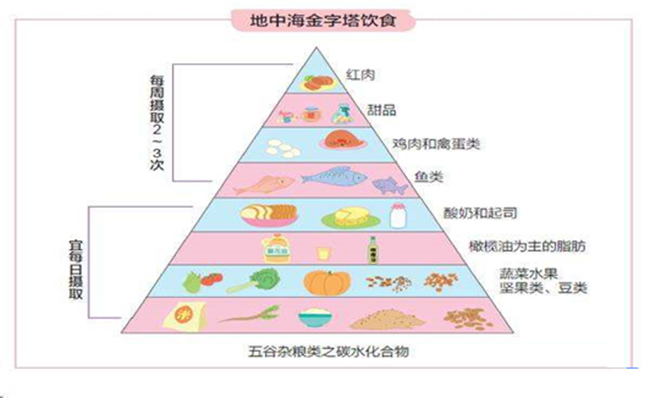 2、每周至少吃几次鱼类和海鲜;适量食用禽类、蛋类、奶酪和酸奶,偶尔吃点甜食和红肉。