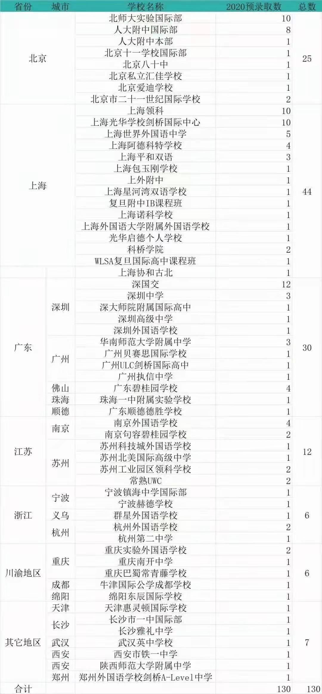 就目前的数字而言,上海、广深、北京地区的学生依旧强势发挥,三地学生刮分了总Offer数的近7成!上海地区更是一骑绝尘,在领科和光华剑桥这两所传统的“牛剑收割机”的带领下,总计获得了44枚牛津Offer。总的来看,牛津大学还是更青睐北上广的学生!