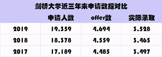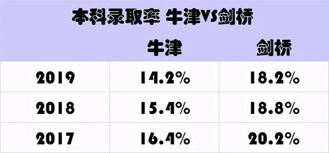 剑桥的申请基数一直是没有牛津多的,但是剑桥的课程位置,也就是实际录取人数,要比牛津多,这也就造就了剑桥的平均录取率高于牛津。