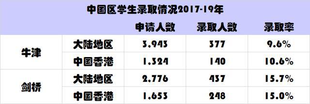 我们再来看一看最近三年,中国区学生的申请和录取情况,通过数据对比不难发现,中国学生的牛剑录取率是远低于平均水平的,也就是说中国学生要想获得牛剑录取是更难哒!