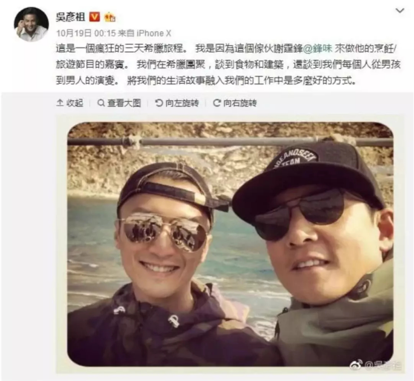 希腊一向是明星热门的旅行目的地,去年10月,吴彦祖与谢霆锋也曾经在希腊度过愉快的旅程。